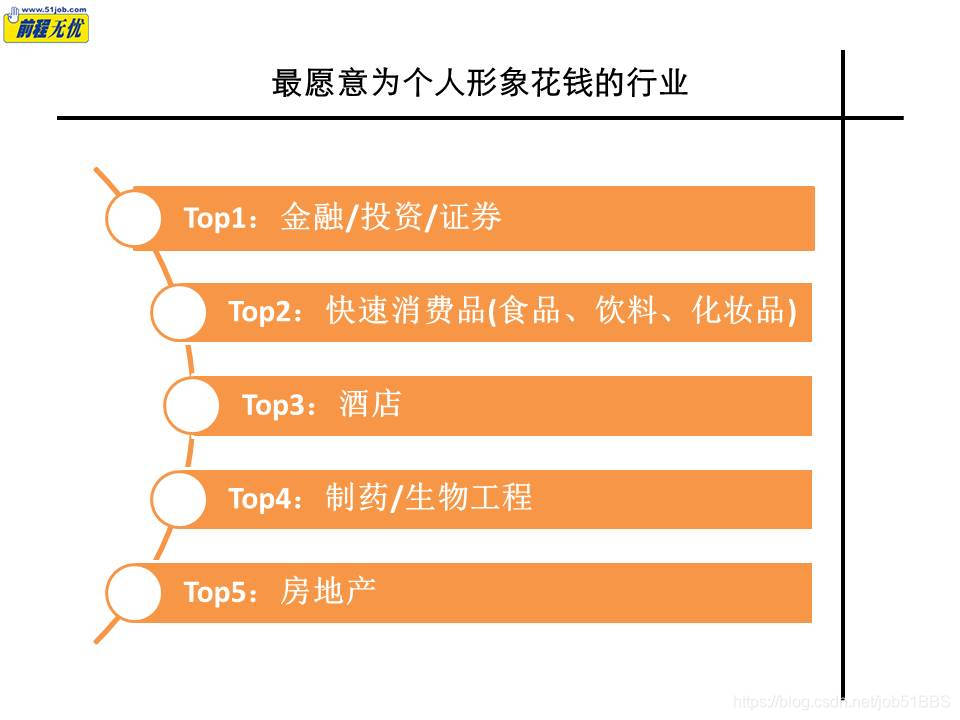 本次调查显示,不同行业不同城市的应聘者对于个人形象(主要是简历照片的拍摄)上的花费存在着明显的差异。金融/投资/证券行业、快速消费品行业、酒店行业、制药/生物工程行业与房地产行业的人最舍得在自己个人形象上花大钱。