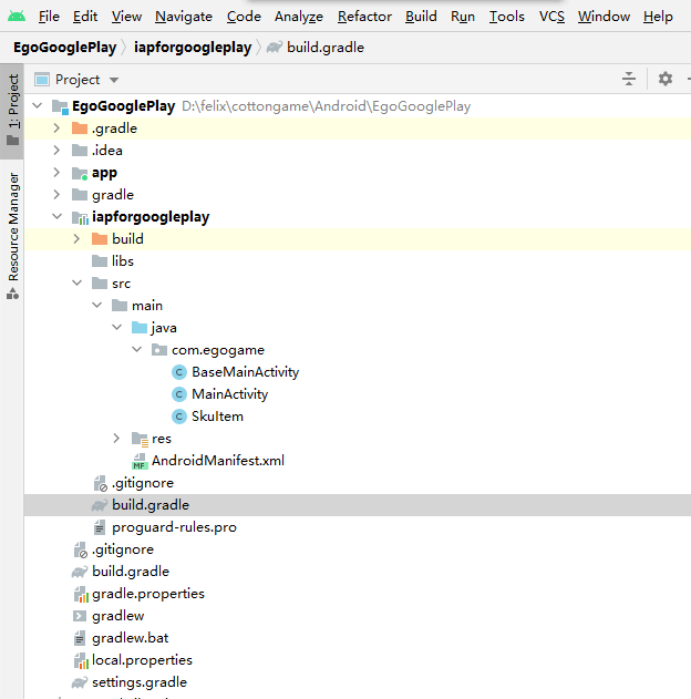 我们的目标是导出自己封装的jar(里面封装了接口供Unity调用,也就是桥接层),以及找到谷歌官方提供的Billing V4插件(aar)。
