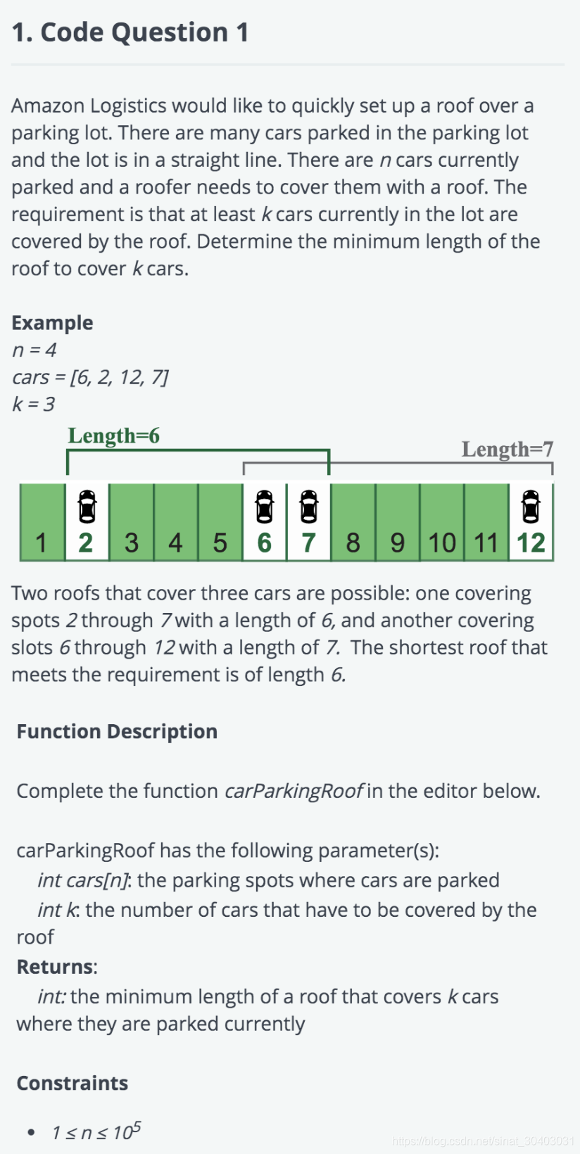 本文主要是介绍Amazon OA Building Roofs for Parking,希望对大家解决编程问题提供一定的参考价值,需要的开发者们随着小编来一起学习吧!