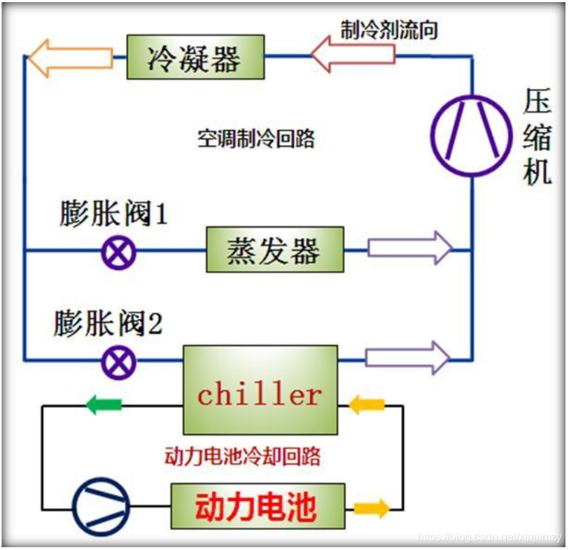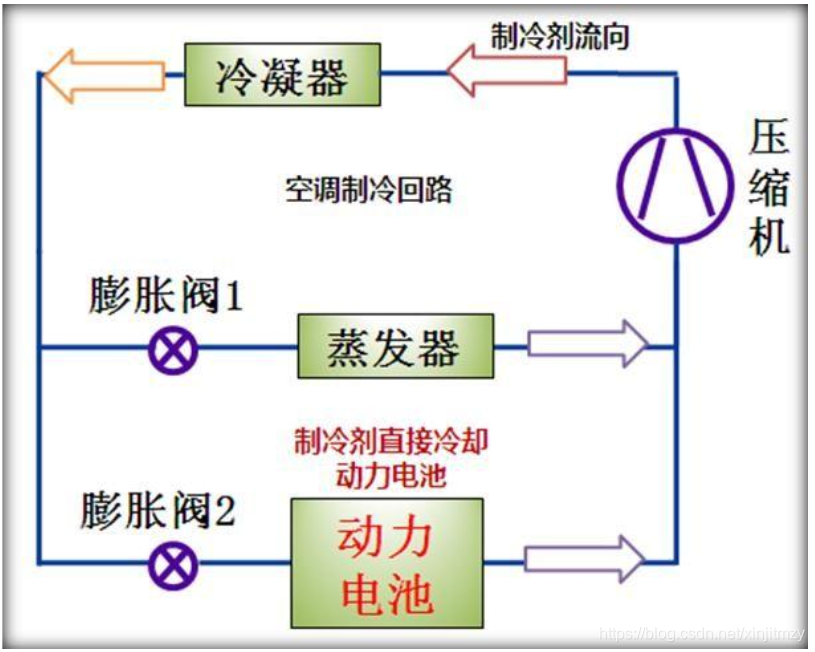 另外,制冷剂直接冷却动力电池技术也在发展,应用不是非常广泛,重要原因是制冷剂的压力一般能够达到3-4个大气压,压力较大,对系统的耐高压和密封要求非常高,风险稍大。