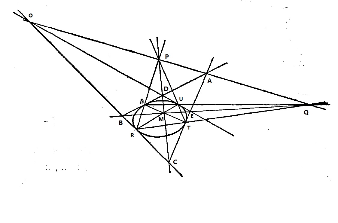 CD与BE与OA围成的三角形PQM为自极三线形