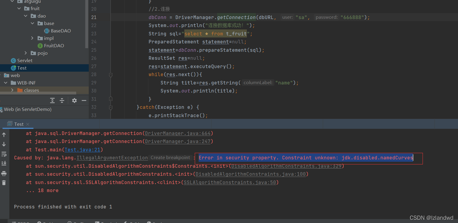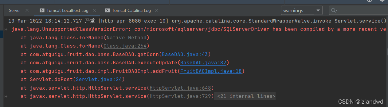 运行tomcat连接sql sever项目中,提交表单后显示500错误(500 - Servlet execution threw an exception)