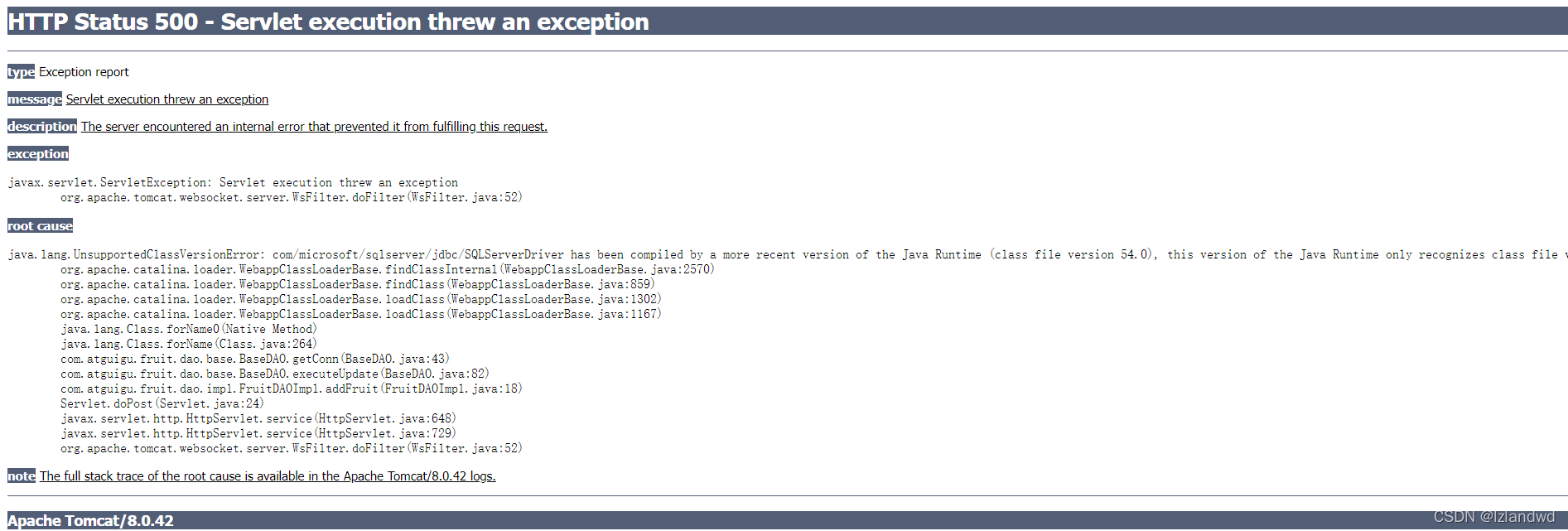 本文主要是介绍HTTP Status 500 - Servlet execution threw an exception,希望对大家解决编程问题提供一定的参考价值,需要的开发者们随着小编来一起学习吧!