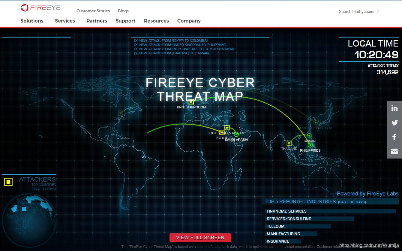本文主要是介绍FireEye网络威胁地图(装逼或学习),希望对大家解决编程问题提供一定的参考价值,需要的开发者们随着小编来一起学习吧!