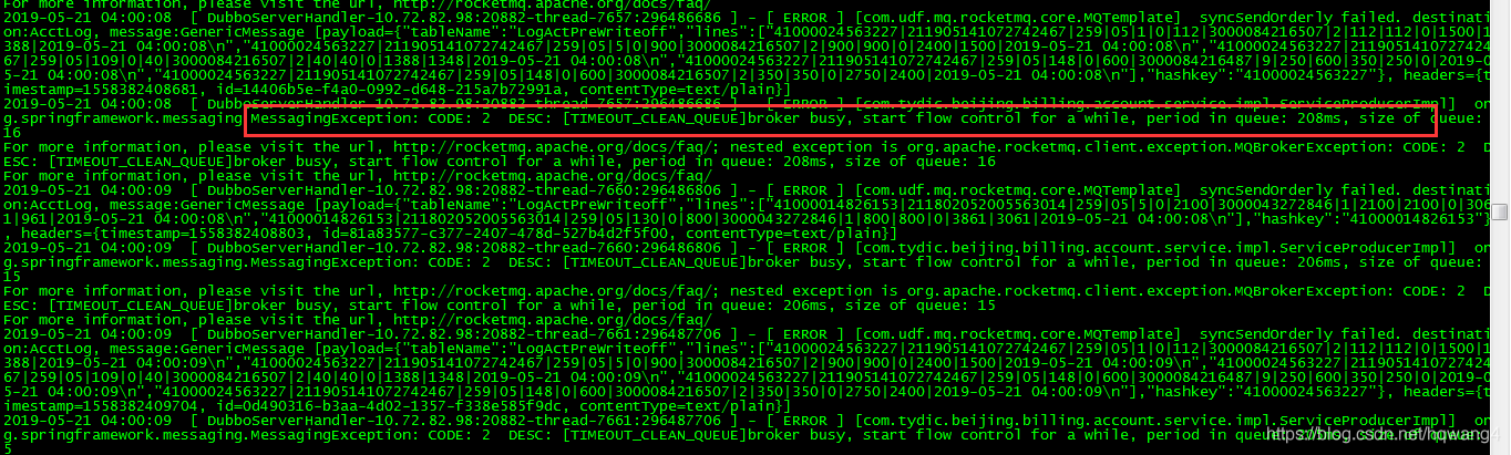 本文主要是介绍RocketMQ--MQBrokerException: CODE: 2 DESC: [TIMEOUT_CLEAN_QUEUE]broker busy,希望对大家解决编程问题提供一定的参考价值,需要的开发者们随着小编来一起学习吧!