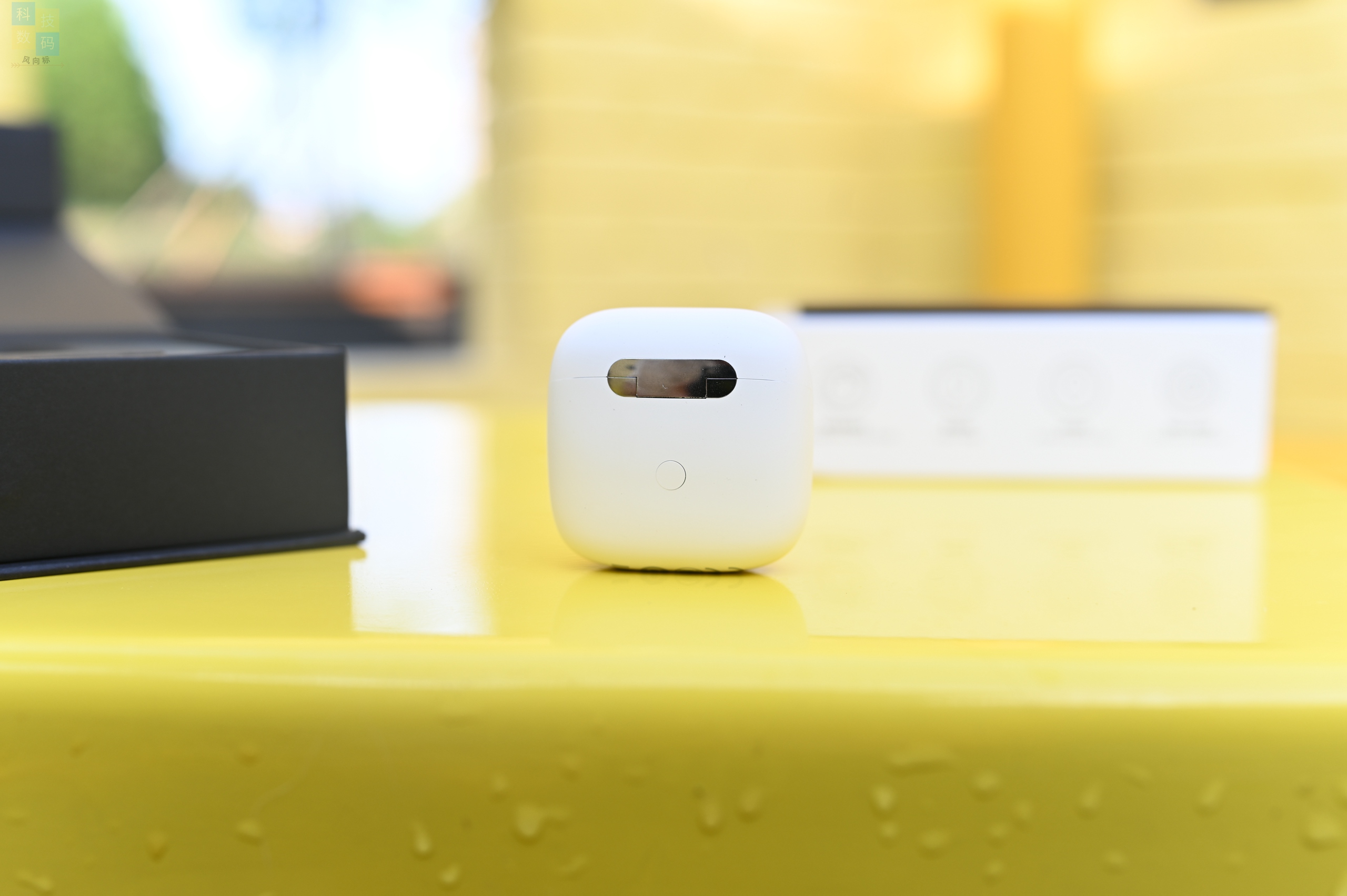 在耳机充电仓的背面有一个按键,主要用来切换耳机的低延迟模式,至于充电接口则是放在了充电仓的底部,可以看到接口部分有金属圈的保护,提升了日常使用中的耐用性。