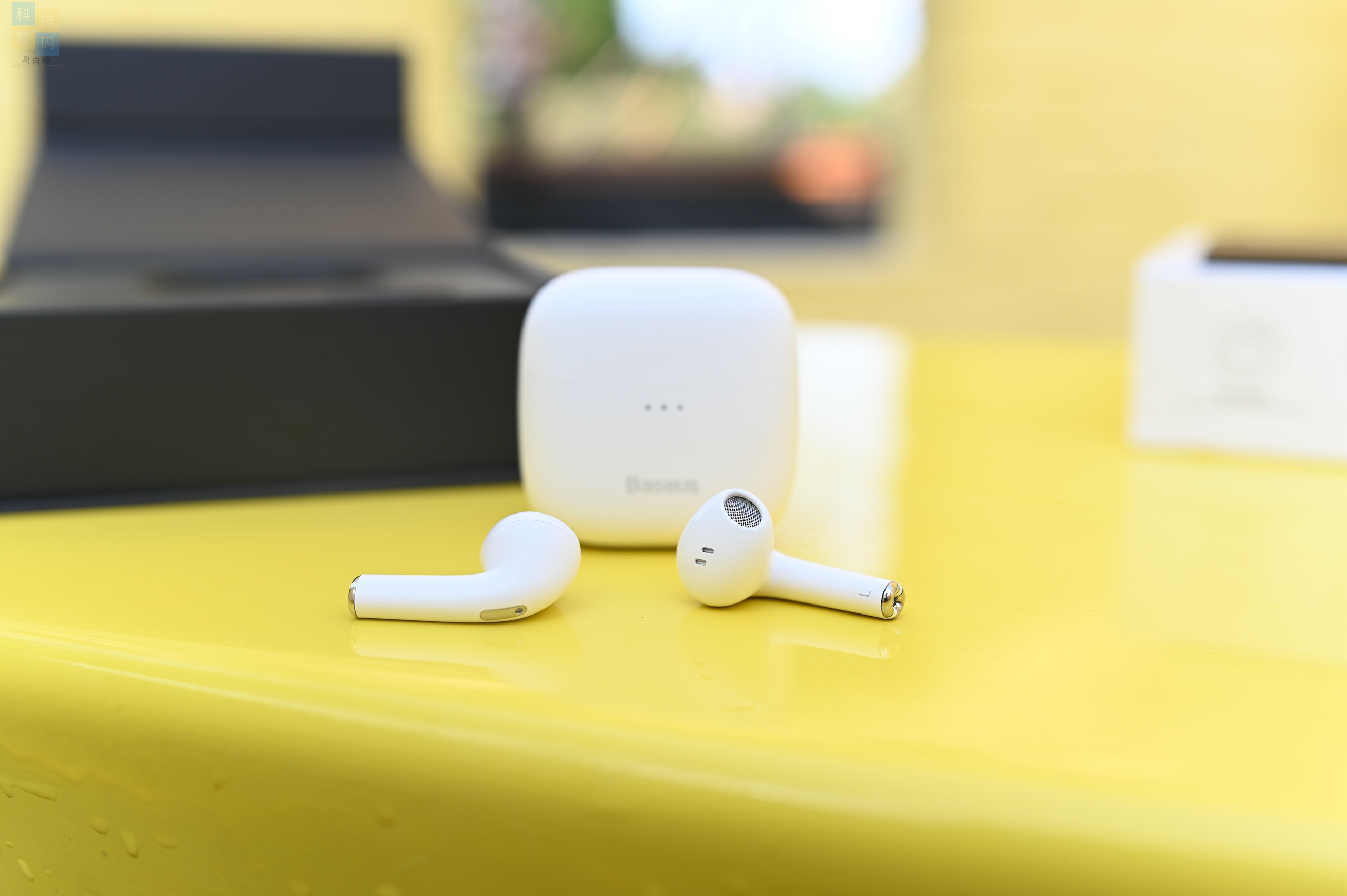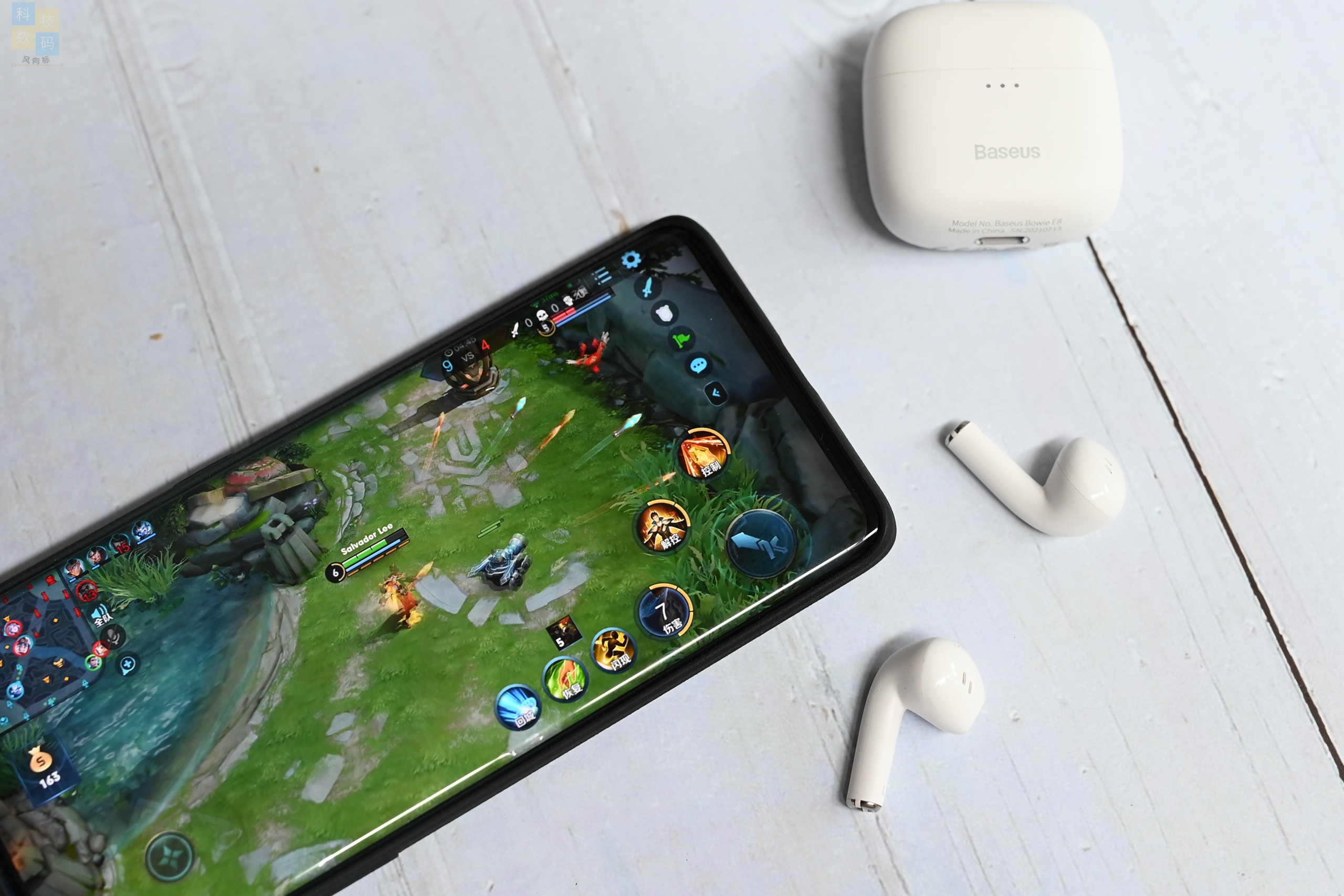 取出耳机后可以看到,倍思Bowie E8的尾巴长度只有1.5厘米,显得十分小巧,戴上之后轻若无物,玩上两局游戏也没什么不适感。另外这款耳机还有入耳检测功能,播放音乐时摘下耳机会自动暂停,设计比较贴心。另外这款耳机具有IPX5的防水能力,平时沾上汗水、雨水都不影响使用。