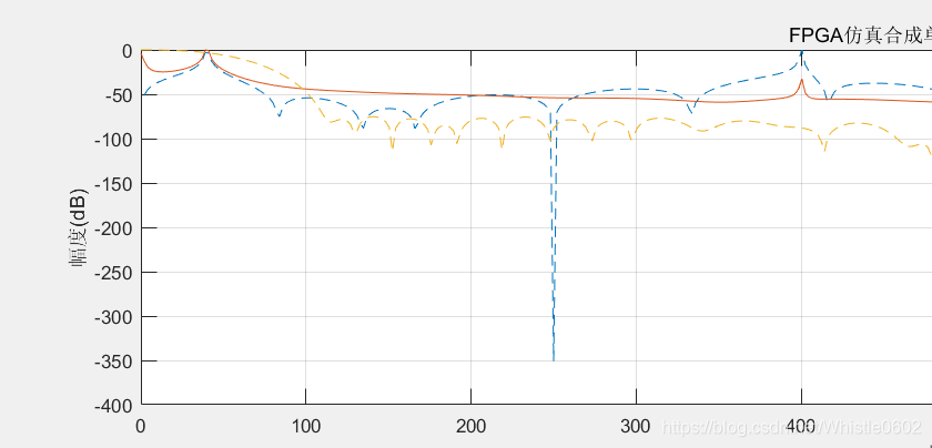 20Hz的200Hz的混合信号,带通滤完波后,200Hz的信号得到抑制,但是在0Hz附近出现了信号,也就是说带通滤波后出现了直流,也就导致了在modelsim中出现波形下移的情况。