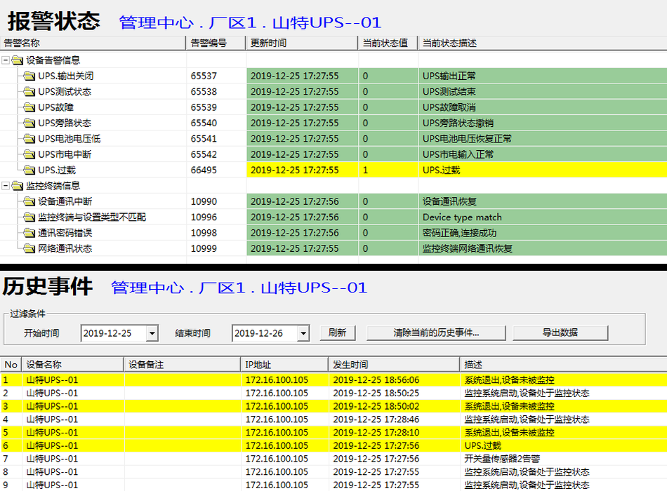 3.保留长时间的历史事件记录,支持文档导出,方便用户对历史故障事件的追溯,预估和判断未知风险,及时地采取解决措施,降低事故的发生率。