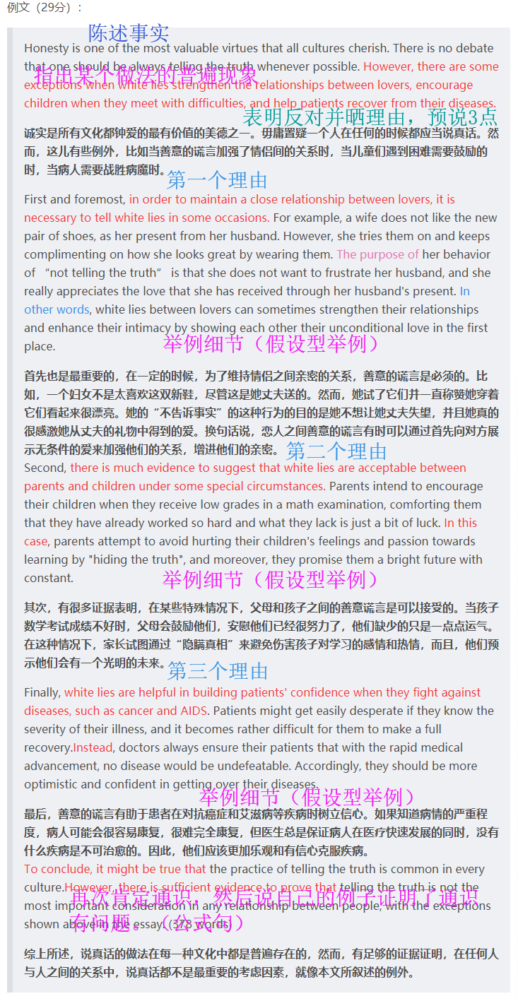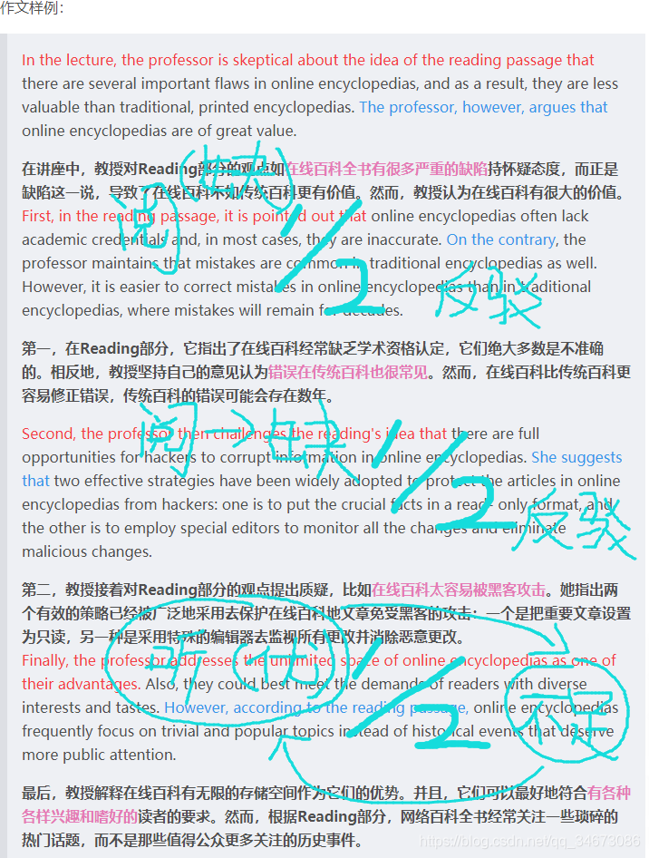 | 中间段2 | 再说阅读指出的缺点 | 1句 | 听力反驳+例子 | 2句 |