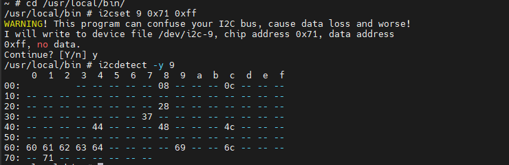 利用i2cset工具,往pca8546的地址 71h写入04h,你看vr芯片的地址都可以看到了