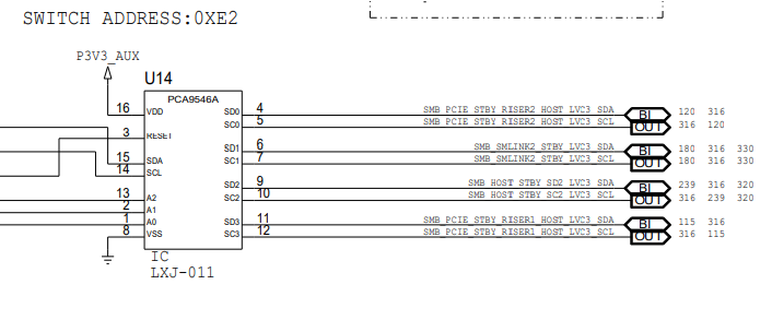 由上图原理图可知i2c-9是SMB_HOST_STBY_BMC_LVC3_R_SDA ,对应pca9546的SD2(channel 2)