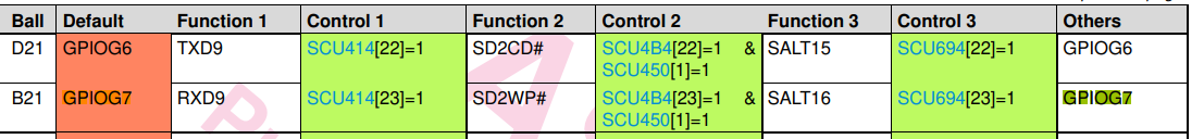 注意如果是ast2600的平台,比如archercity,那么这个GPIOG7是被复用成sd2的,结果就会发现gpiotool set fail, 因此需要保证bootloader和kernel部分没有复用芯片这部分功能(要把dts中的配置disable)