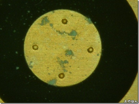 之前在Facebook上有跟大家分享過這張照片,這是ENIG表面處理的板子,在經過了高低溫及濕度的環境測試(Environmental Test)後,按鍵金手指的表面上居然出現了大小不一的綠色汙染物。