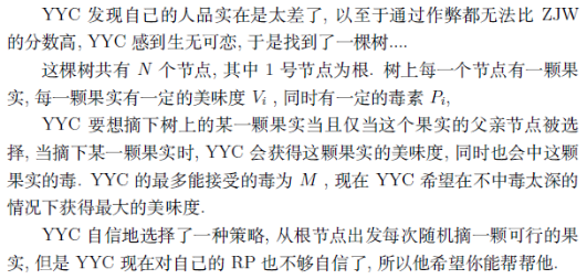 此题为树形DP,就是用f[i][j]维护美味值最大,但是需要用毒素值去优化即可不会超时。