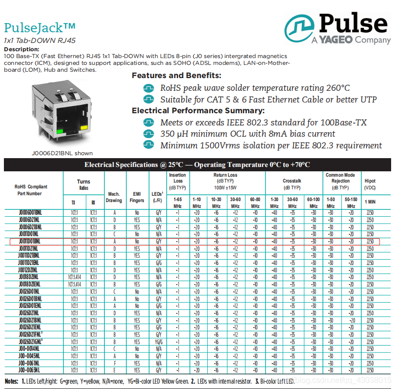 本文主要是介绍普思J0011D01BNL 百兆网络连接器 RJ45网口详情及建议芯片配置,希望对大家解决编程问题提供一定的参考价值,需要的开发者们随着小编来一起学习吧!