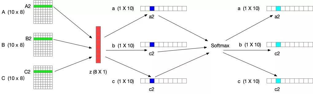 进行softmax计算每个卷积核的权重,计算方式如下图所示。如果是两个卷积核,则 ac + bc = 1。z的维度为(d * 1)A的维度为(C * d),B的维度为(C * d),则a = A x z的维度为1 * C。