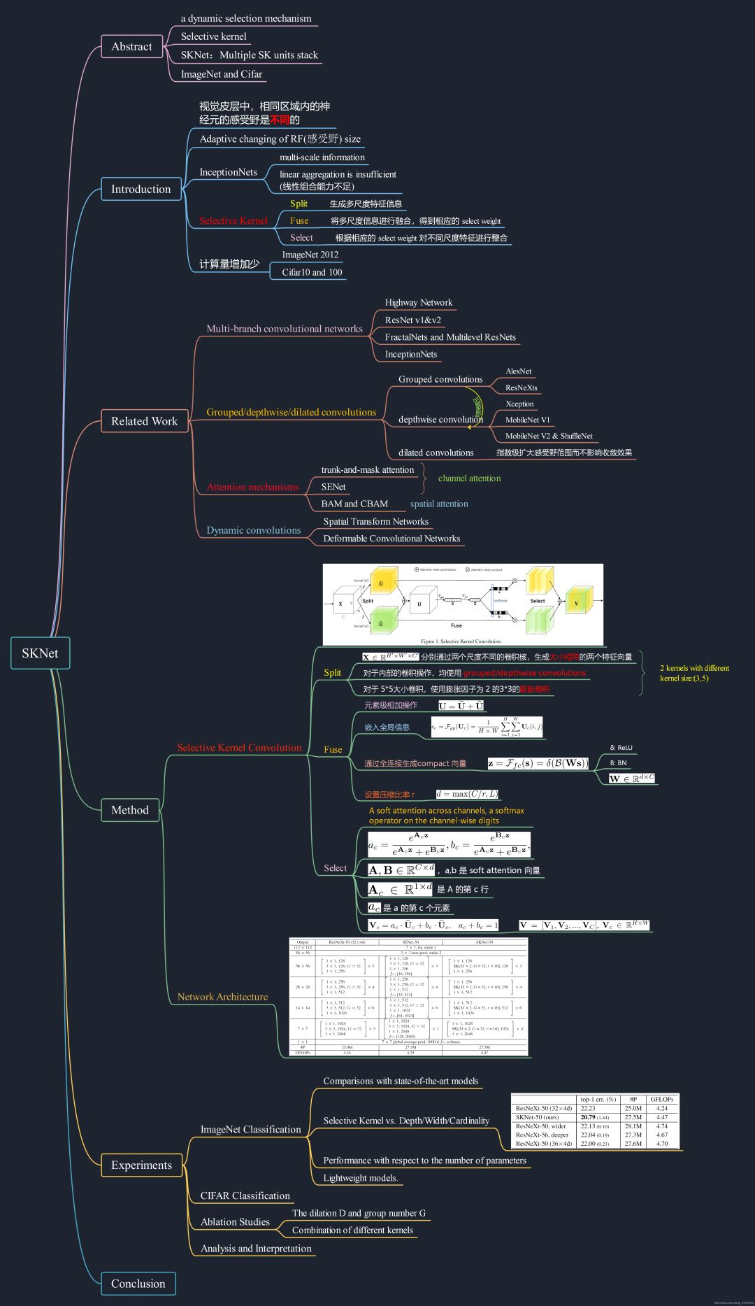 下图是针对SKNet总结的思维导图,参考地址:https://blog.csdn.net/qq_34784753/article/details/89381947?depth_1-utm_source=distribute.pc_relevant.none-task&utm_source=distribute.pc_relevant.none-task