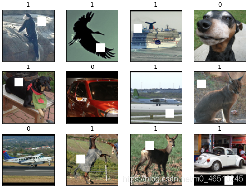 具体来说,我们选择了 STL 数据集,并在一些图像中包含了一个白色补丁,如下所示。 任务是创建一个神经网络,对两种类型的图像进行分类。