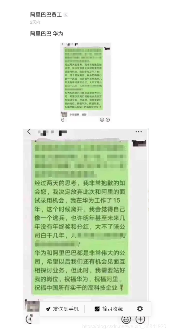 自己决定放弃此次和阿里的面试录用机会,在华为工作了15年,这个关键时候离开未免像个逃兵,就算未来几年华为没有年终奖和分红,自己也大不了赔公司白干几年。此刻更重要的是站好自己这班岗,同样也祝福如同华为、阿里这般所有实干的中国高科技企业!