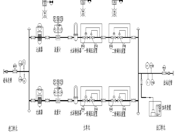 其一,进口单元,也就是上游管路,通过这一部分,天然气可输送至调压站;