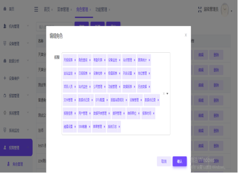 权限管理:该平台最大权限人是仪表公司,然后按照站点进行权限分配。