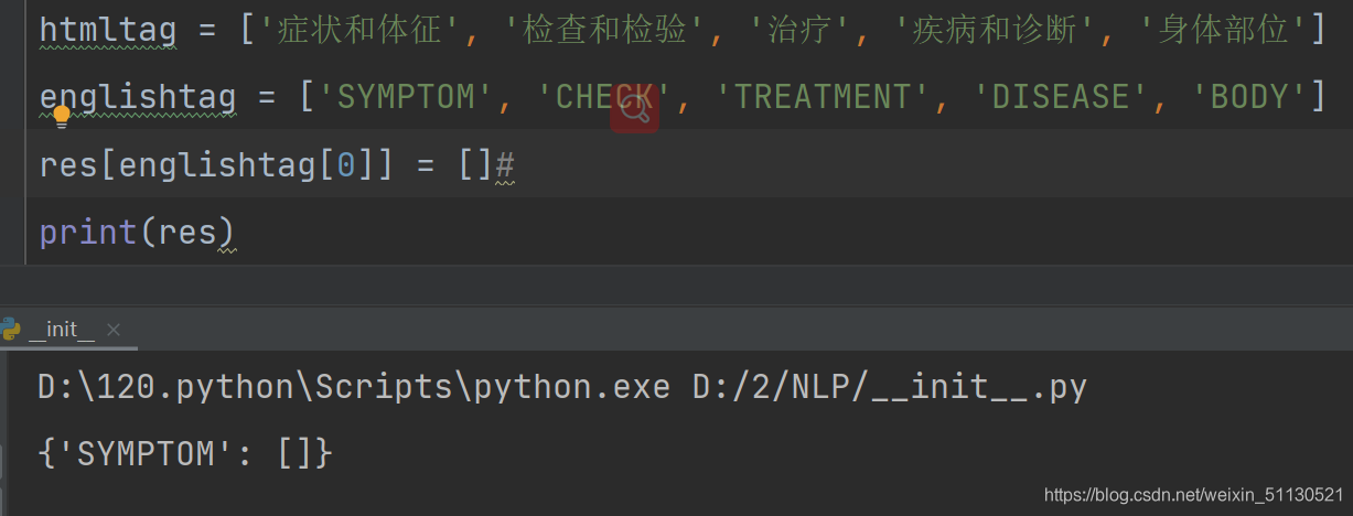englishtag = ['SYMPTOM', 'CHECK', 'TREATMENT', 'DISEASE', 'BODY']def readFileUTF8(filename):fr = codecs.open(filename, 'r', 'utf-8')text = ''for line in fr:text += line.strip()return textdef extract_tag_information(text):res = {}for i, html in enumerate(htmltag):res[englishtag[i]] = []pattern = re.compile(r'<' + html + '>(.*?)</' + html + '>', re.S)contents = pattern.findall(text)for content in contents:content = re.compile('<[^>]+>', re.S).sub('', content)res[englishtag[i]].append(content)return resdef extract_all_information(text):pattern = re.compile('<(.*?)>(.*?)</\\1>', re.S)contents = pattern.findall(text)ans = ''for content in contents:content = re.compile('<[^>]+>', re.S).sub('', content[1])ans += contentprint (content)return ansdef getType(type):if type == '症状和体征':return 'SIGNS'elif type == '检查和检验':return 'CHECK'elif type == '疾病和诊断':return 'DISEASE'elif type == '治疗':return 'TREATMENT'elif type == '身体部位':return 'BODY'else:return 'OTHER'def split(text):"""以标签数据分割成list"""res = []start = 0end = 0while end < len(text):if text[end] == '<':# < 前面的信息写入if start != end:res.append(text[start: end])start = end + 1else:start += 1# <>中的信息end = go(text, start)res.append(text[start: end])start = end + 1end = startelse:end += 1if start != end:res.append(text[start: end])return res# 将标签数据集转换成ner格式的标准数据集