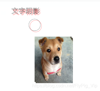 public class MyTextView extends TextView {private Paint mPaint;private Bitmap bitmap;public MyTextView(Context context) {this(context, null);}public MyTextView(Context context, @Nullable AttributeSet attrs) {this(context, attrs, 0);}public MyTextView(Context context, @Nullable AttributeSet attrs, int defStyleAttr) {super(context, attrs, defStyleAttr);mPaint = new Paint();mPaint.setAntiAlias(true);mPaint.setDither(true);mPaint.setStyle(Paint.Style.STROKE);mPaint.setTextSize(ConvertUtils.sp2px(22));//radius : 模糊半径,参数越大,越模糊,越小,越清晰,为0则阴影消失//dx : 阴影的横向偏移距离 ,正值向右偏移,负值向左偏移//dy : 阴影的纵向偏移距离 ,正值向下偏移,负值向上偏移//shadowColor :绘制阴影的画笔颜色,对图片阴影无效mPaint.setShadowLayer(1, 10, 10, Color.RED);bitmap = BitmapFactory.decodeResource(getResources(), R.drawable.dog);}@SuppressLint("DrawAllocation")@Overrideprotected void onDraw(Canvas canvas) {super.onDraw(canvas);canvas.drawColor(Color.WHITE);canvas.drawText("文字阴影", 100, 100, mPaint);canvas.drawCircle(300, 200, 50, mPaint);Rect rect = new Rect(300, 300, bitmap.getWidth(), bitmap.getHeight());canvas.drawBitmap(bitmap, null, rect, mPaint);}}