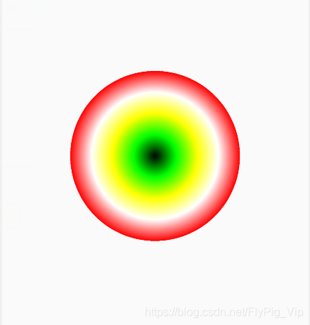 public class RadialGradientView extends View {private Paint mPaint;private RadialGradient mRadialGradient;public RadialGradientView(Context context) {this(context, null);}public RadialGradientView(Context context, @Nullable AttributeSet attrs) {this(context, attrs, 0);}public RadialGradientView(Context context, @Nullable AttributeSet attrs, int defStyleAttr) {super(context, attrs, defStyleAttr);setLayerType(LAYER_TYPE_SOFTWARE, null);mPaint = new Paint();}@SuppressLint("DrawAllocation")@Overrideprotected void onDraw(Canvas canvas) {super.onDraw(canvas);if (mRadialGradient == null) {int mRadius = getWidth() / 2;int[] colors = {0xff000000, 0xff00ff00, 0xffffff00, 0xffffffff, 0xffff0000};float[] pos = {0.0f, 0.25f, 0.5f, 0.75f, 1.0f};mRadialGradient = new RadialGradient(getWidth() / 2,getHeight() / 2,mRadius,colors,pos,Shader.TileMode.REPEAT);mPaint.setShader(mRadialGradient);canvas.drawCircle(getWidth() / 2, getHeight() / 2, mRadius, mPaint);}}