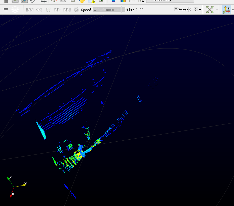 工具栏可以控制播放速度,可以看到一共录制23帧点云数据。
