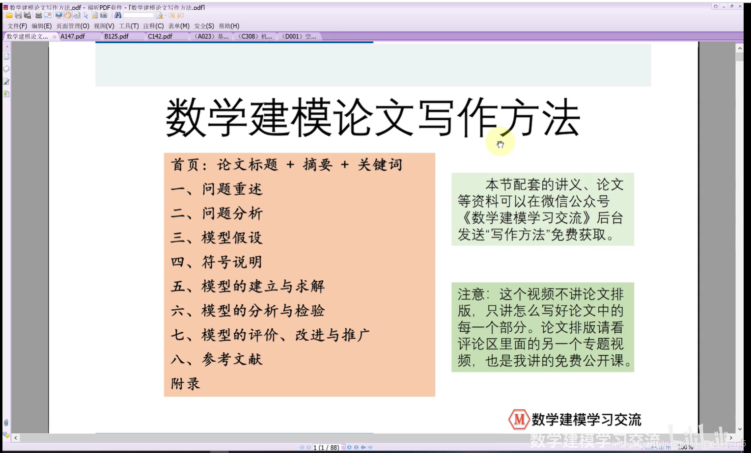 - 视频地址【哔哩哔哩网站:数学建模清风——论文写作方法教程(国赛和美赛)】