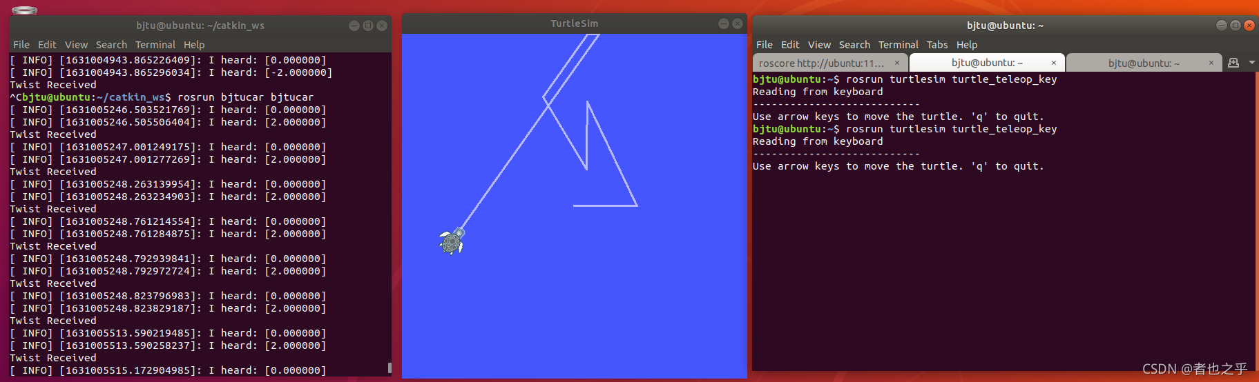 可以通过输入方向键,发送cmd_vel消息,myCar节点监听该消息后打印出来。