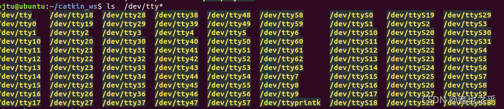 查看串口设备,修改串口名称:ls /dev/tty*。 一般是ttyACM0 或者 ttyUSB0。