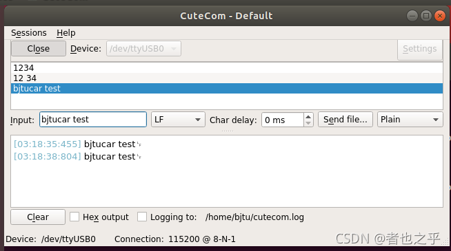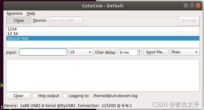 (2)通过终端打开软件:sudo cutecom (需要root权限,否则无法打开串口)