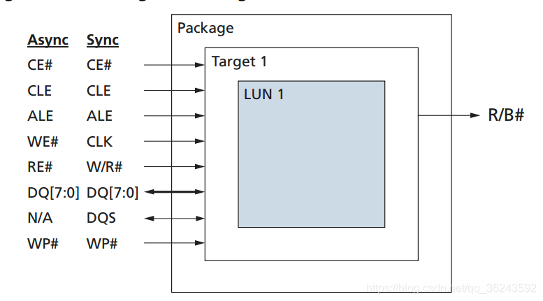 一个target对应一个CE、R/B信号线。根据封装的不同,target里可能会有一个或多个die。spec原文如下: