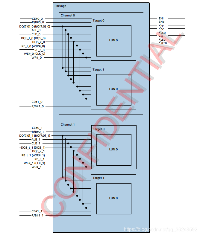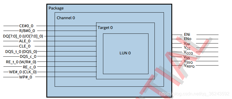 channel 表示有几组ALE、CLE、IO[7:0]、DQS、RE、WE、WP信号线。