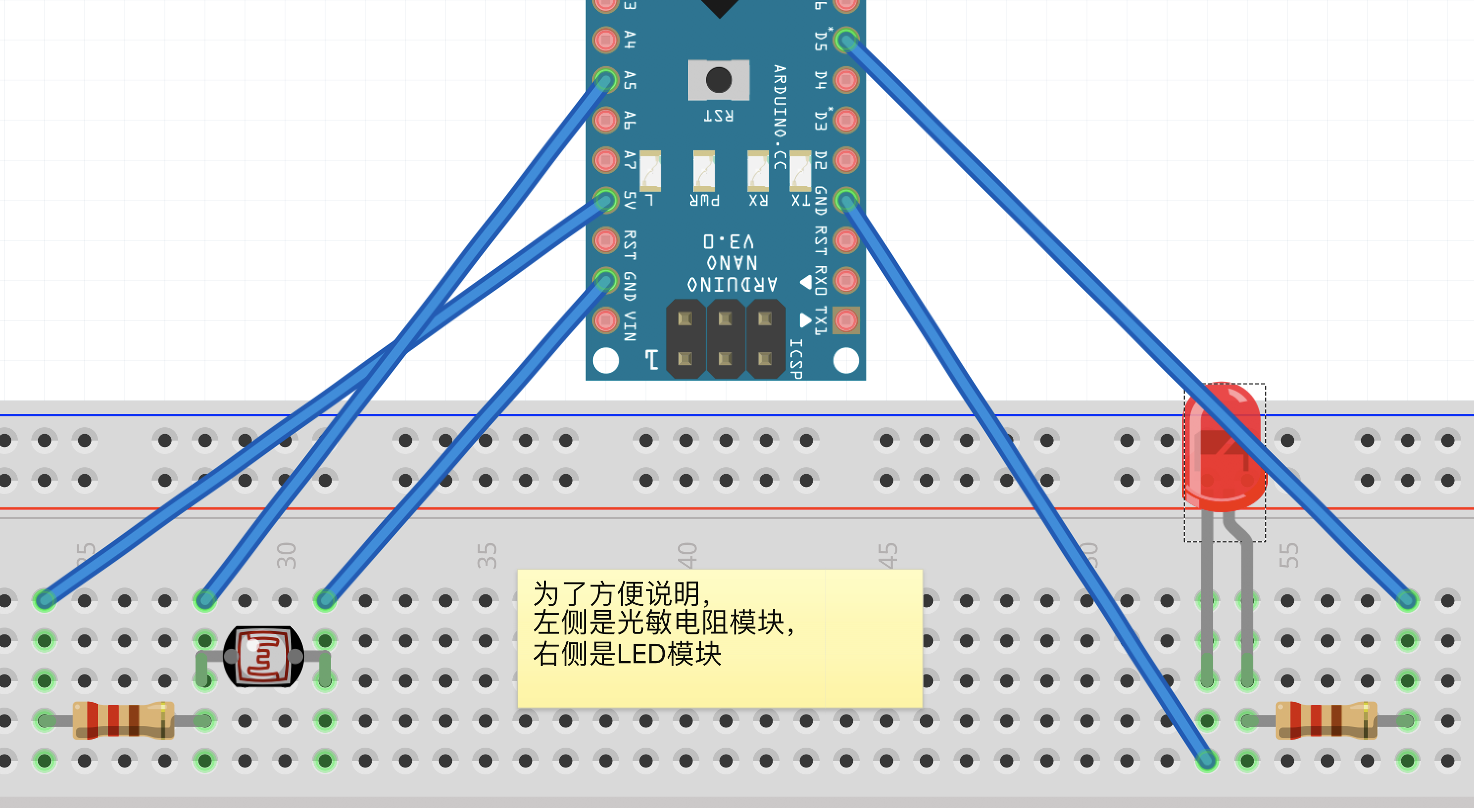 本文主要是介绍光敏电阻和ArduinoNano做暗光灯,希望对大家解决编程问题提供一定的参考价值,需要的开发者们随着小编来一起学习吧!