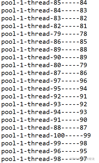// ExecutorService e2 = Executors.newFixedThreadPool(10);ExecutorService e3 = Executors.newSingleThreadExecutor();//使用线程for(int i=0; i<100; i++) {e3.execute(new Task(i));}}