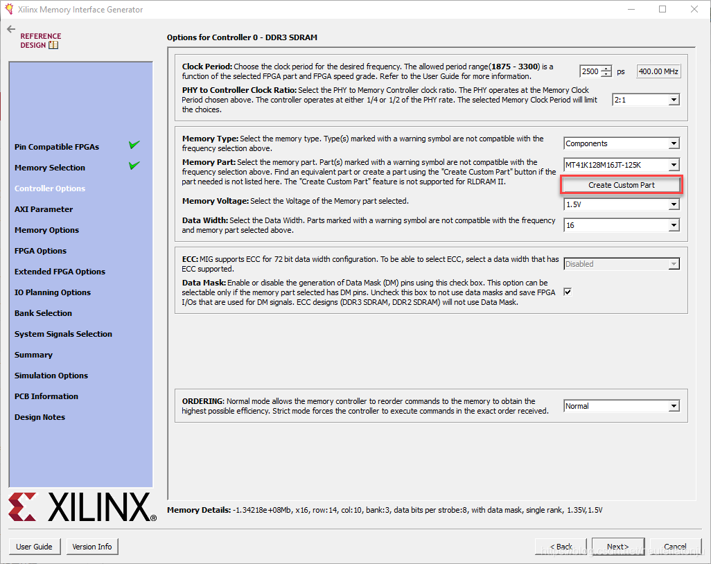 VIVADO MIG列表支持的DDR型号有限,很多时候需要添加列表之外的DDR型号,我们以MT41K128M16JT-125:K为例进行介绍。