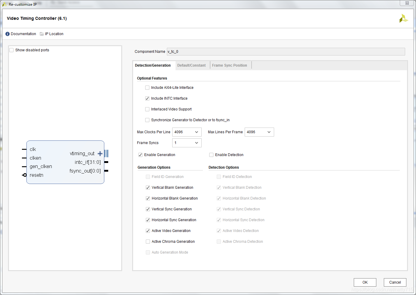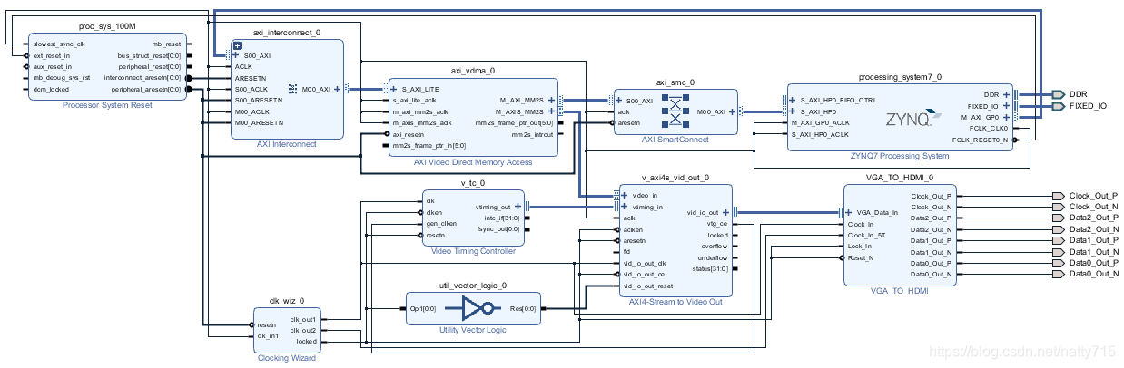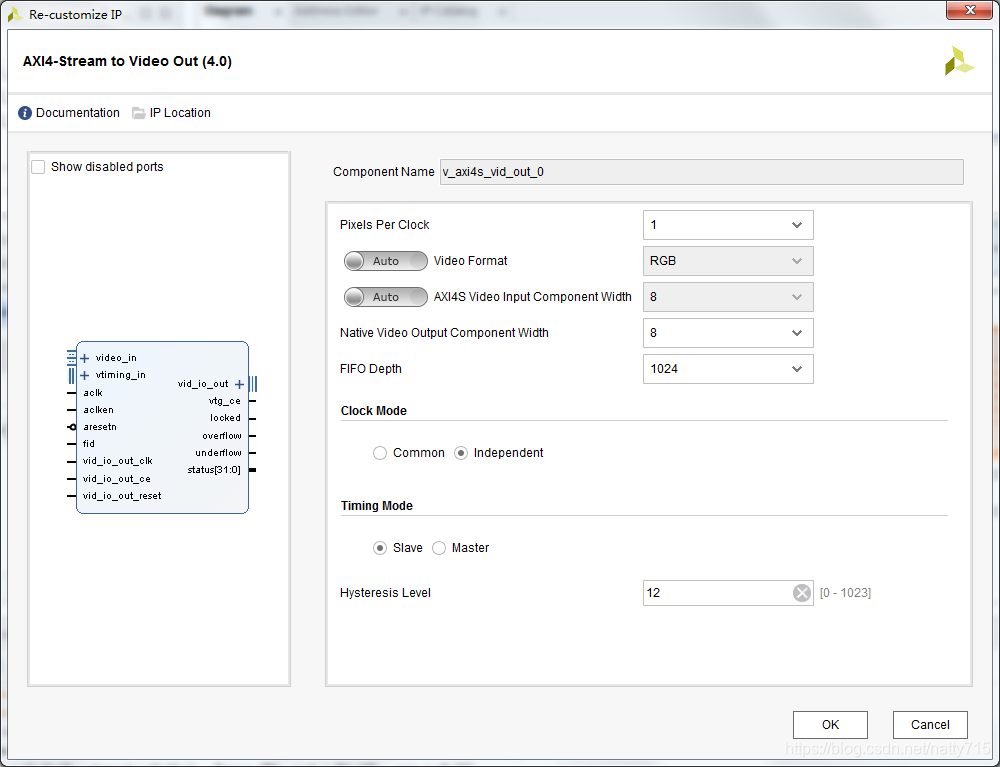 axi4-stream to video out把axi4-stream的视频信号转成标准行场信号输出,选择独立时钟。