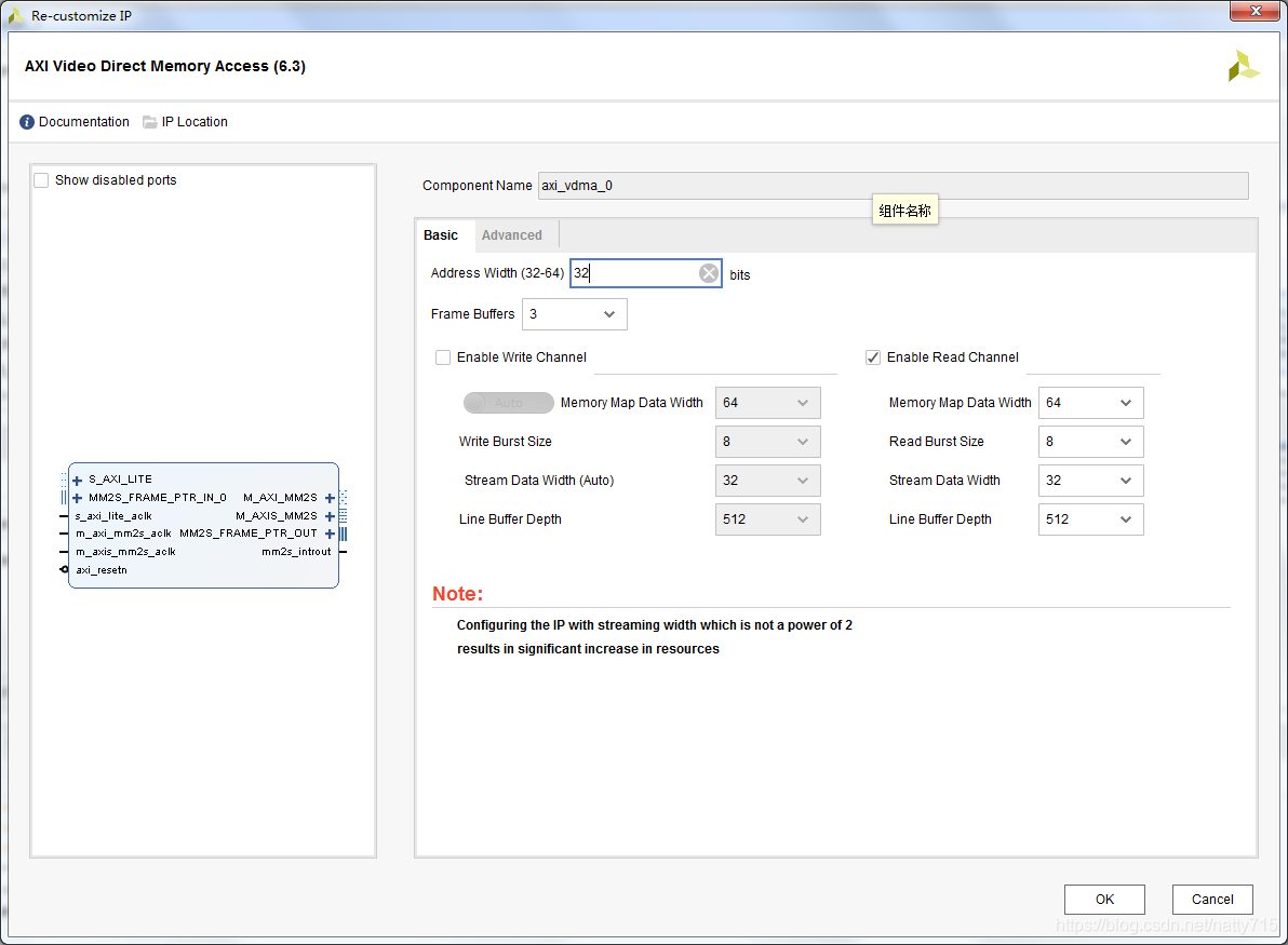 因为这里只做图片显示输出,所以vdma只配置读通道就行。