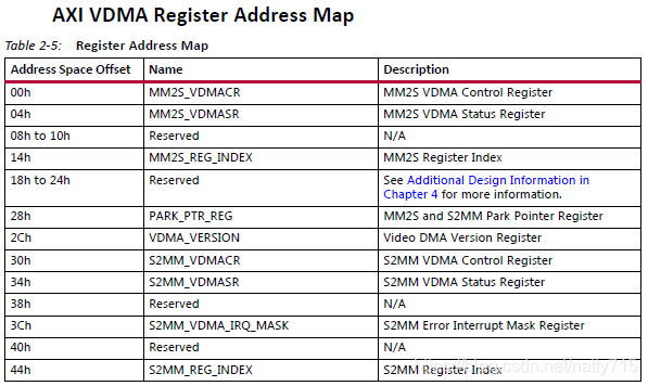 5.VDMA_init里,寄存器的定义和设置的值可以参考pg020_axi_vdma.pdf这个手册p15,可以看到,寄存器是小端模式,偏移也是4字节对齐的。