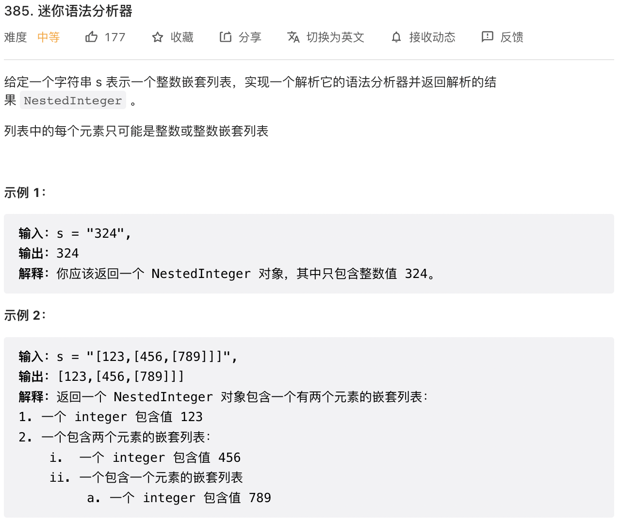本文主要是介绍LeetCode 385. 迷你语法分析器,希望对大家解决编程问题提供一定的参考价值,需要的开发者们随着小编来一起学习吧!
