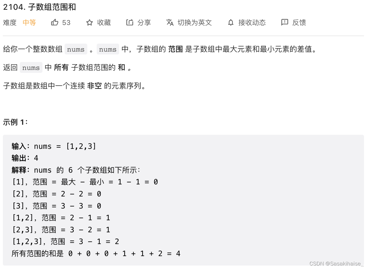 本文主要是介绍LeetCode 2104. 子数组范围和,希望对大家解决编程问题提供一定的参考价值,需要的开发者们随着小编来一起学习吧!