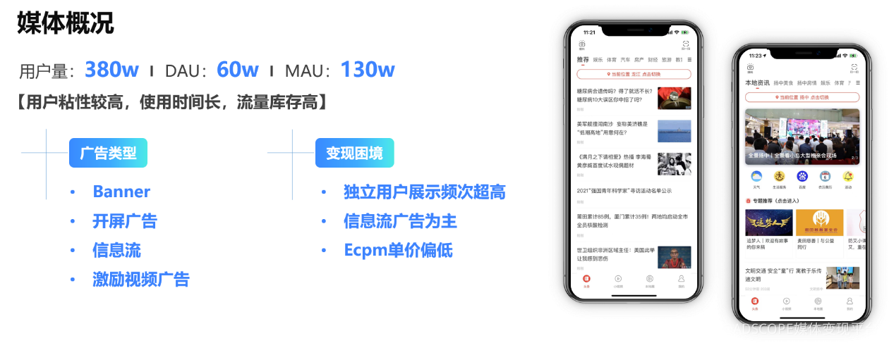 (1)该媒体日活60W,用户粘性较高,使用时间长,流量库存高,有一定的商业变现价值。