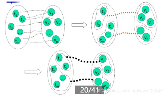 想象一下,地上有两个圈,代表两个义项;这两个圈里,分别有若干个球,代表了每个义项对应的词翻译;然后这两个圈里还有若干个方块,代表了每个义项在该语言中对应的上下文。然后球和方块之间有线连着(球与球,方块与方块之间没有),随便连接,球可以连多个方块,方块也可以连多个球。然后,圈没了,两个圈里的球和方块都混在了一起,乱七八糟的,你该怎么把属于这两个圈的球和方块分开。