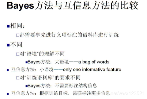 完全无监督词义消歧不可能,没有标注无法定义词义,可通过无监督方法做词义辨识。无监督词义辨识,一种贝叶斯分类器,参数估计不是基于有标注训练语料,是先随机初始化参数p(v|s),根据EM算法重新估计概率值,对w每一个上下文c计算p(c|s),得到真实数据似然值,重新估计p(v|s),重新计算似然值,不断迭代不断更新模型参数,最终得到分类模型,可对词分类,有歧义词在不同语境会被分到不同类别。