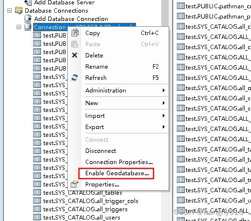 6、enable 成功后使用数据库管理工具查看启动enable GeoDatabas