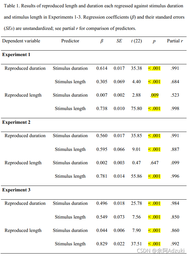 (3)由Fig 2,实验3中复制时间整体来说是最长的,其次是实验1,可能是因为这两个实验中都采用了unfilled length,相比不确定性更小的直线,需要被试集中更多精力来对其进行加工,因而知觉到更长的时间;但三个实验中回归直线的斜率差距不大。
