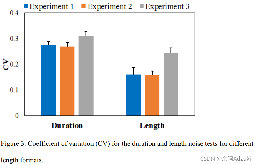 用单维度任务中复制时距和长度的变异系数CV来衡量其(在记忆中)表征的噪声,值为标准差与均值之比,CV越大则噪声越大,结果见Fig 3:只有在长度任务中,实验3的CV显著大于实验1和2,说明dynamic unfilled length的噪声比unfilled/filled length都大。